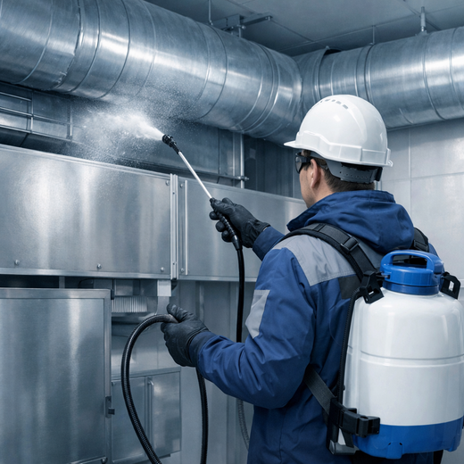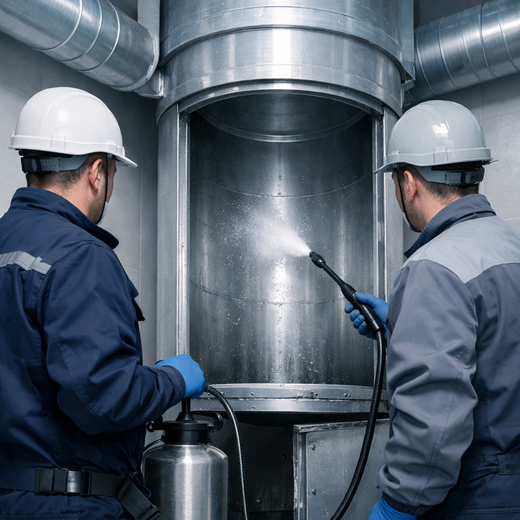 Завершающим этапом является дезинфекция, направленная на уничтожение бактерий и микроорганизмов, развивающихся в жировой среде. Услуга снижает риск возгораний, устраняет стойкие запахи и помогает объекту соответствовать санитарным и противопожарным требованиям, обеспечивая безопасные условия эксплуатации.